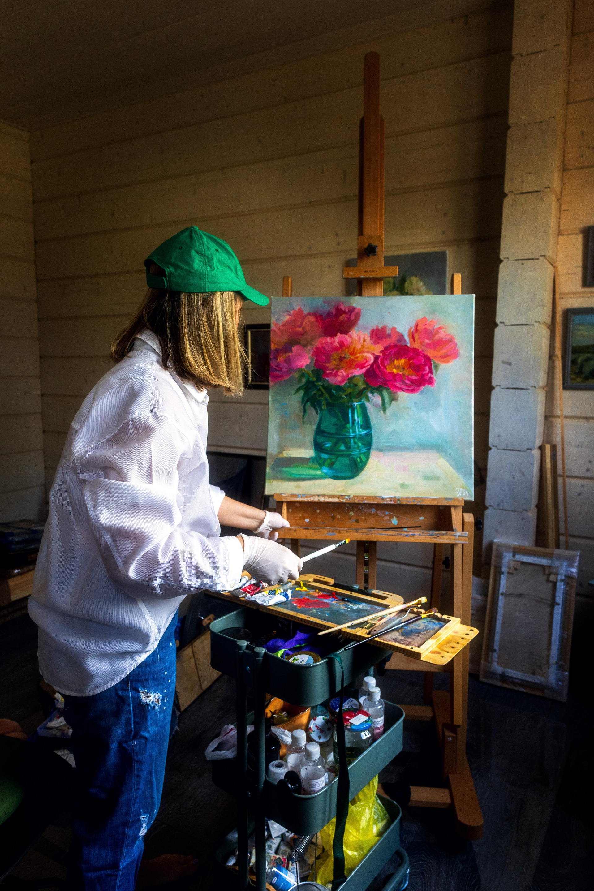 Съемка проводилась в большом загородном доме города Пушкино Московской области в мастерской у художницы. Вторая локация — винная комната. Вся съемка была произведена на фикс-объективы 24 и 85 миллиметров.